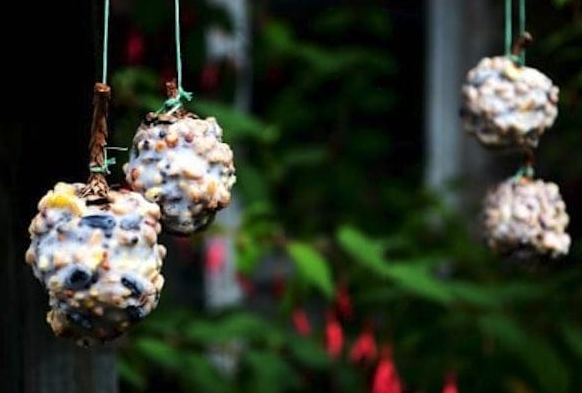Il est tout à fait possible de fabriquer vous-même des boules de graisse et de graines, en faisant fondre de la graisse ou du suif récupérés chez le boucher et en la mélangeant à des graines de tournesol. Une fois le mélange tiédi, il n’y a plus qu’à le placer dans un petit filet et à le suspendre à une branche d’arbre.