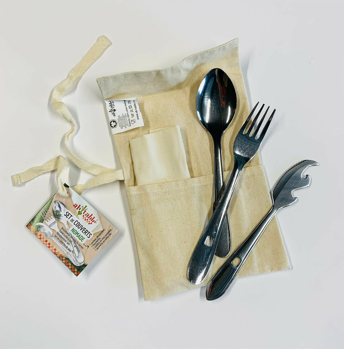 Léger et fonctionnel, ce set de couverts nomades se réutilise à volonté et vous accompagne partout : pique-niques en plein air, voyages, repas à l'extérieur... Les plus ? Les couverts s'attachent entre eux et le couteau fait décapsuleur et ouvre boîte. Un tout-en-un très pratique pour les déjeuners improvisés.