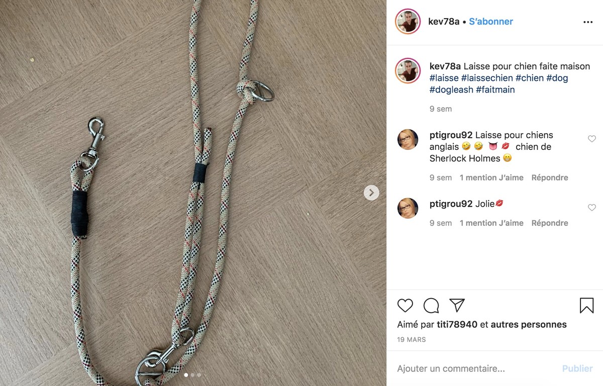 Pour vous inspirer, retrouvez ce beau modèle de laisse DIY sur le compte instagram de kev78a.