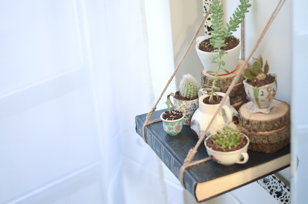 Certaines personnes n’hésitent pas à utiliser tout leur service à thé obsolète pour créer un jardin complet. Une pilea dans la théière, des succulentes dans les tasses et un cactus dans le sucrier, le tout déposé dans le plateau de service. Si vous pensiez jeter le service à thé de votre grand-mère, recyclez-le en un véritable jardin d’intérieur.