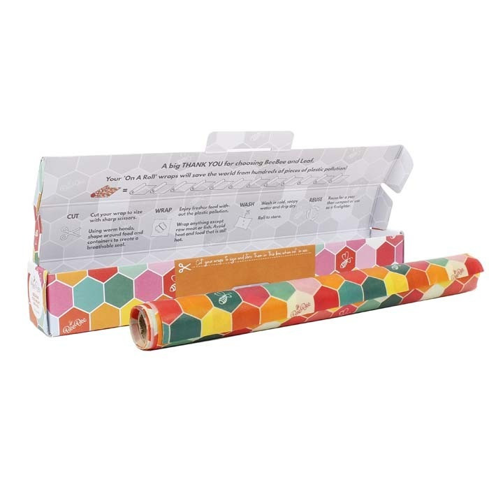 Avec ce généreux rouleau aux motifs nid d’abeille, vous pouvez couper simplement aux ciseaux la taille du bee wrap dont vous avez besoin pour mettre à l’abri vos fruits, légumes, morceaux de fromage et autres aliments. Excellente alternative zéro déchet aux films alimentaires en plastique et au papier alu. Très facile à utiliser et à entretenir.