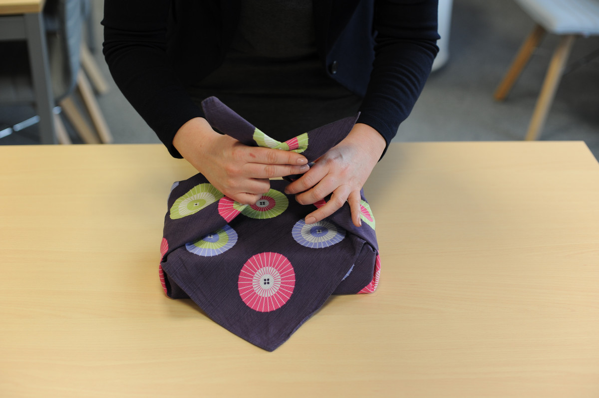Tout l’art du furoshiki repose sur les techniques de nouage et de pliage pour emballer vos objets sans recourir à la moindre épingle, bouton ou broche et maintenir le tissu en place.