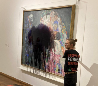 Deux militants écologistes, revendiquant être du mouvement autrichien pour le climat « Dernière génération » (Letzte Generation), ont aspergé ce mardi matin d'un liquide noir un chef-d'œuvre de Gustav Klimt au Musée Léopold de Vienne pour passer un message.