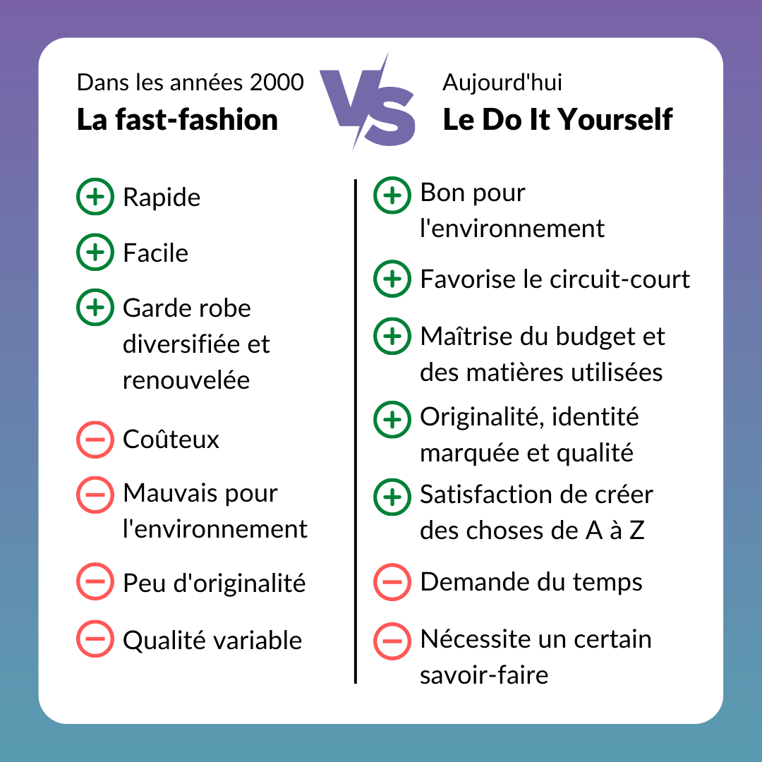 Dans ce contexte, le DIY apparaît comme une alternative durable à l’industrie néfaste de la fast-fashion tout en étant moins onéreux que certains articles de mode de marques éthiques et responsables.