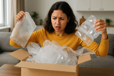 Vous recevez un colis, curieux comme un enfant, et là… c’est le choc : 3 mètres de bulles plastiques, un carton XXL pour une simple brosse à dents, des inserts en mousse qui semblent dignes d’un vaisseau spatial. Sur votre canapé, votre âme zéro déchet se rebelle devant ce trop-plein d'emballages : « Puis‑je refuser ce gaspillage ? » Oui. Et non. Je vois déjà le point d’interrogation sur votre front. Rassurez-vous, on va décortiquer ça. Vous obtiendrez des repères pratiques et légaux pour agir en connaissance de cause face à un colis suremballé.