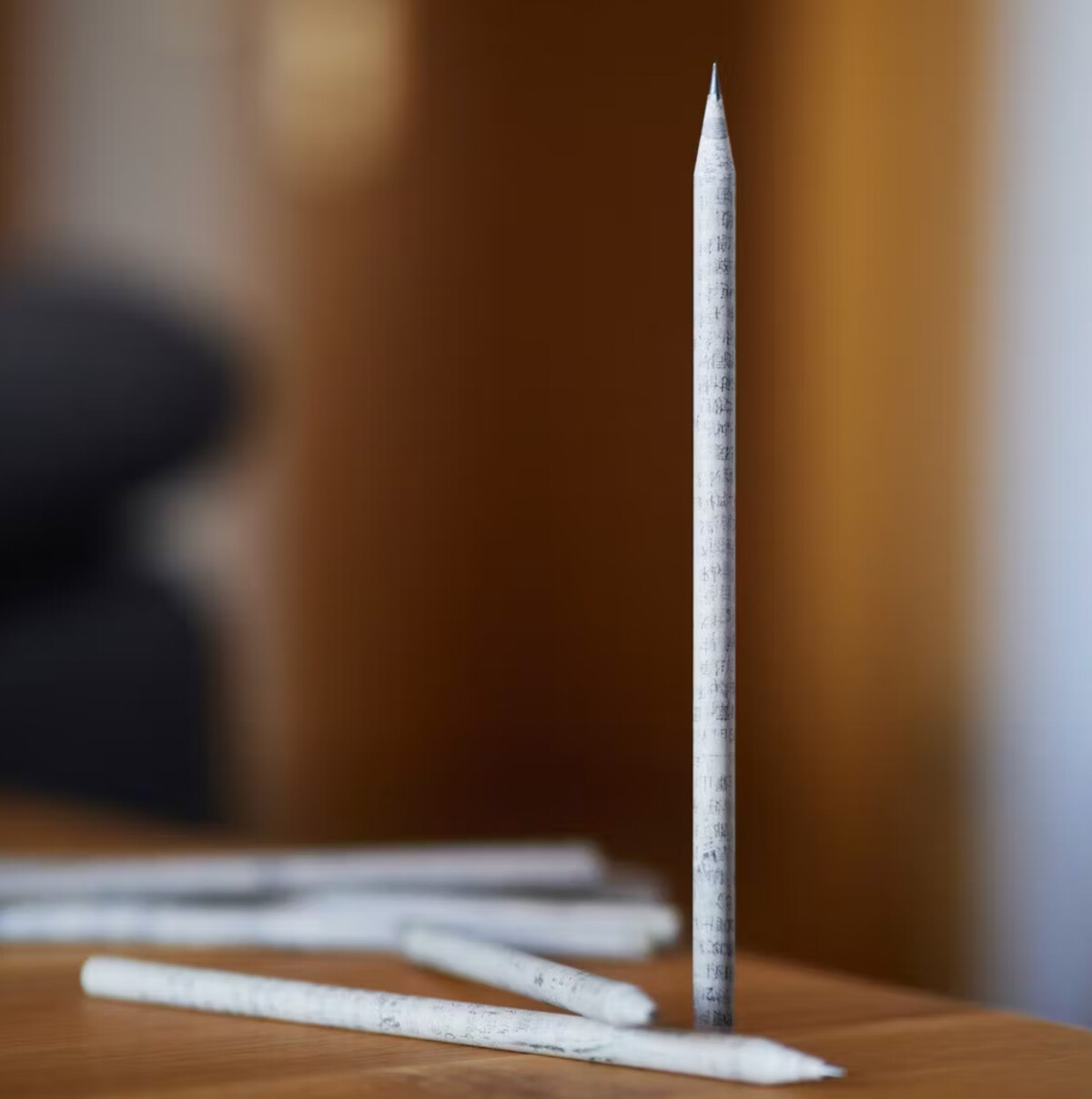 - Composition : 12 crayons | Magazines recyclés | Graphite (plomb) et colle résine (non vegan)