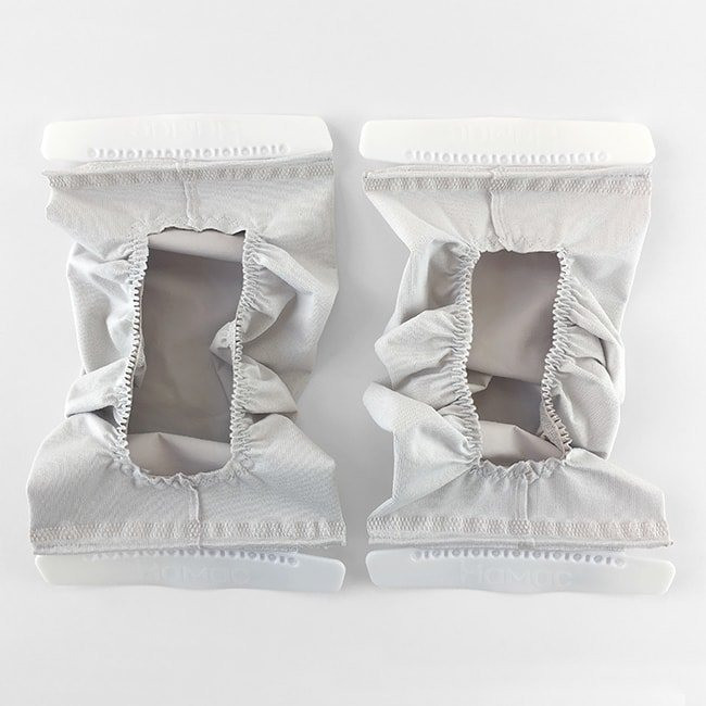 Les 2 nacelles sont confectionnées en polyuréthane. Elles possèdent deux petites barrettes à insérer dans la couche-culotte pour rester en place.