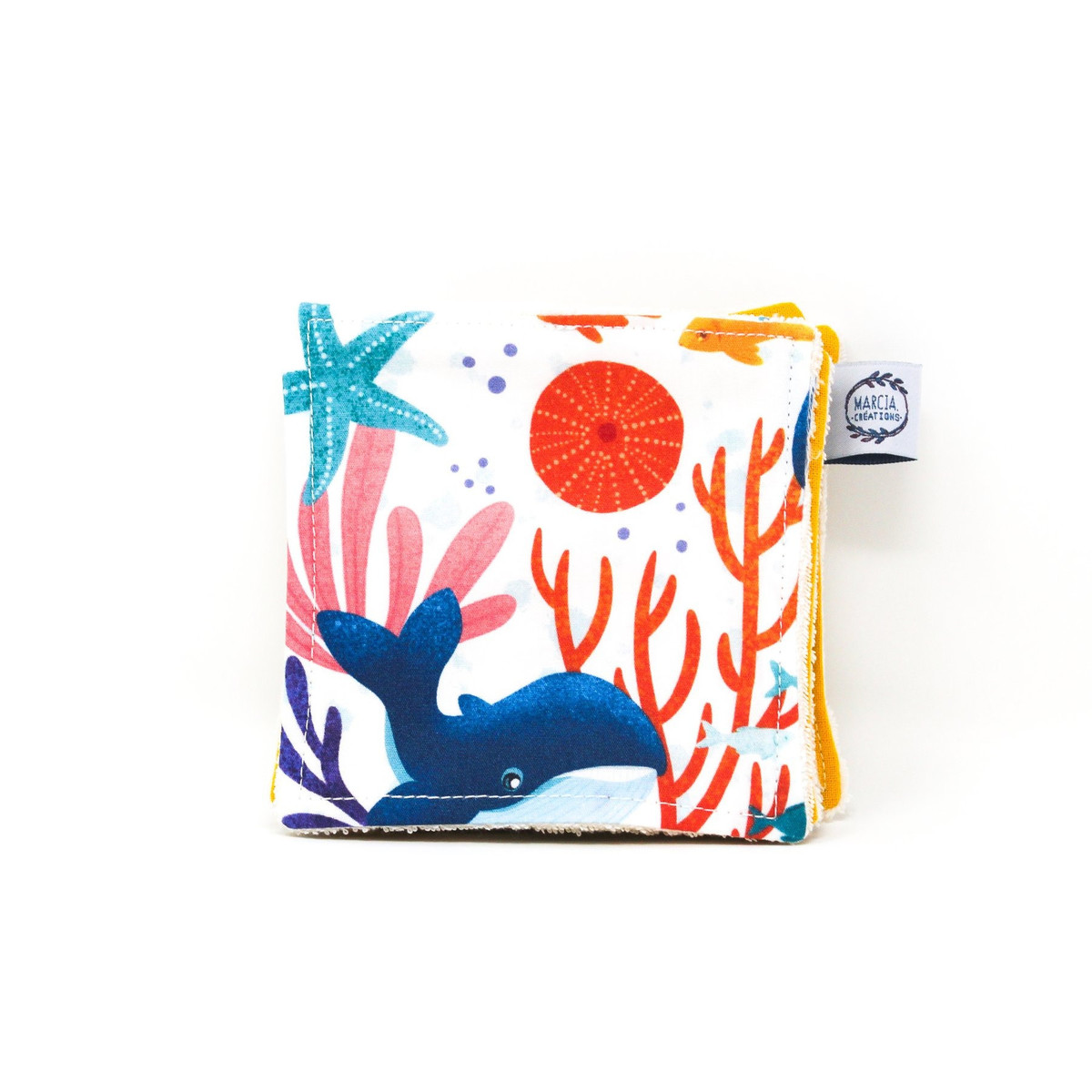 Les lingettes lavables sont indispensables dans une salle de bain zéro déchet. Ce modèle de lingettes réutilisables en coton bio est adapté pour la toilette et le change des bébés. Mais vous pouvez également les utiliser pour démaquiller votre visage de manière écoresponsable. Photo non contractuelle.