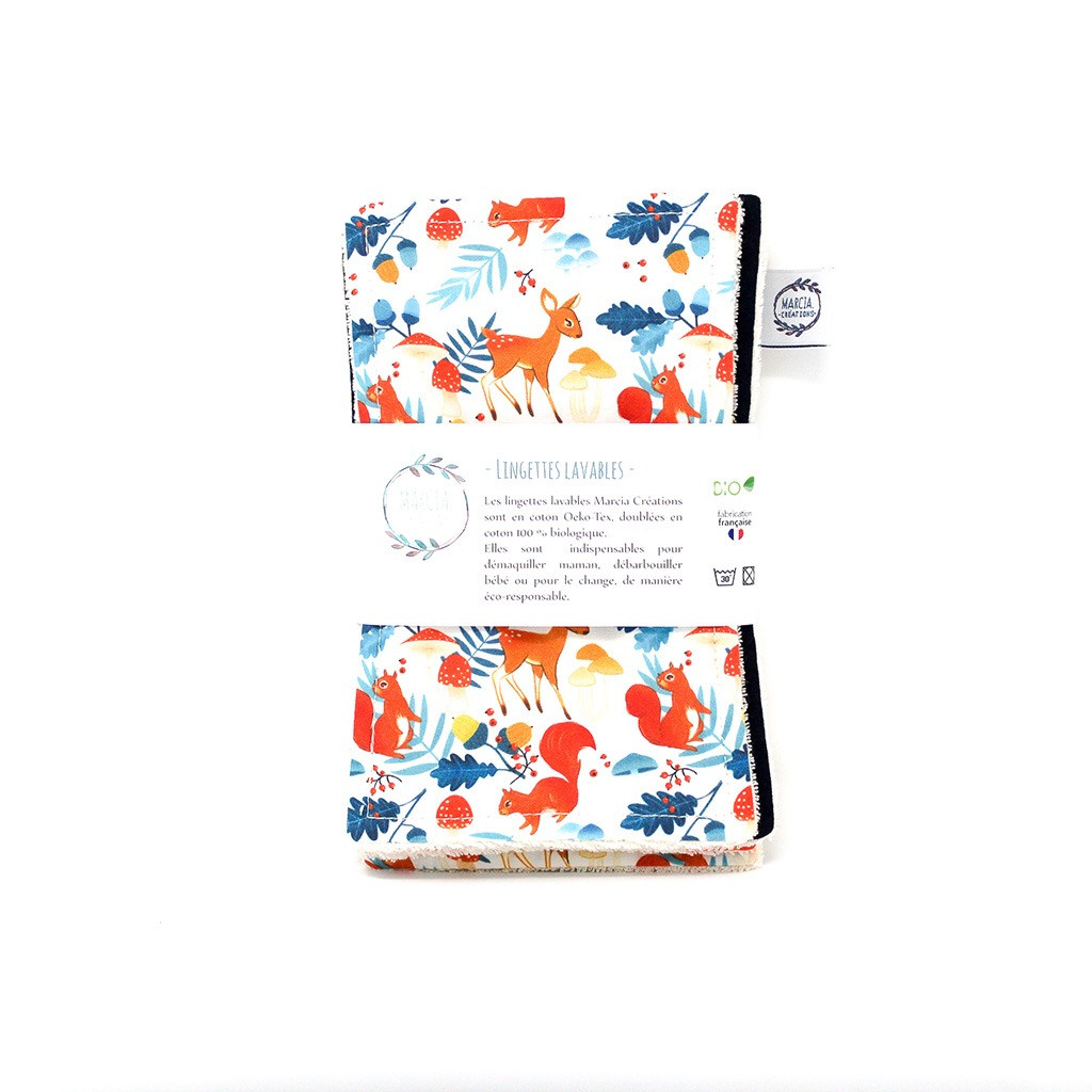 6 lingettes lavables maxi MARCEL en coton bio