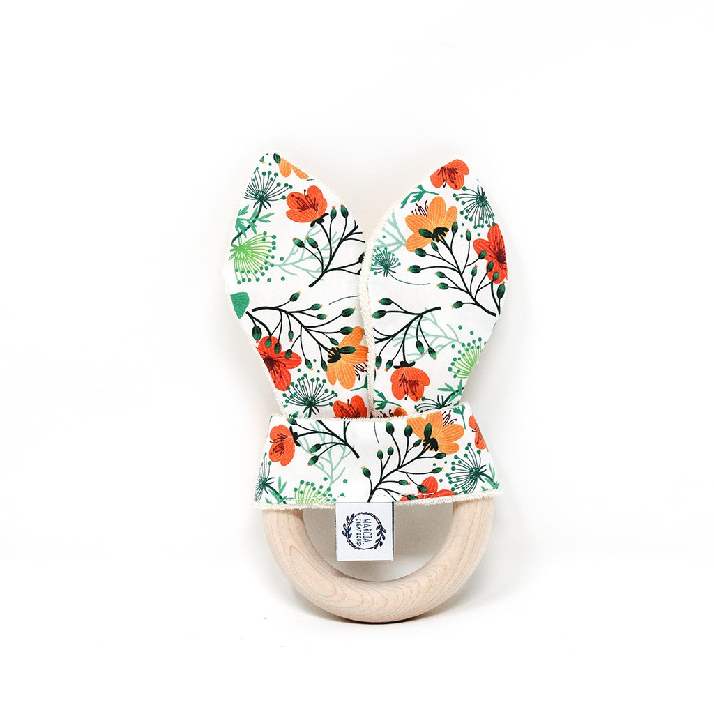 Pour soulager les gencives de votre bébé et pour l’amuser, optez pour ce joli anneau de dentition en bois d’érables et ses oreilles de lapin en coton biologique.