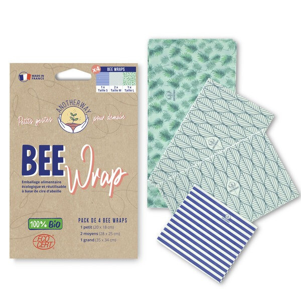 Emballez vos aliments avec du film alimentaire réutilisable à la cire d’abeille. Ce pack comprend trois formats différents, dont deux en taille M, pour recouvrir plusieurs tailles de contenants ou d’aliments.