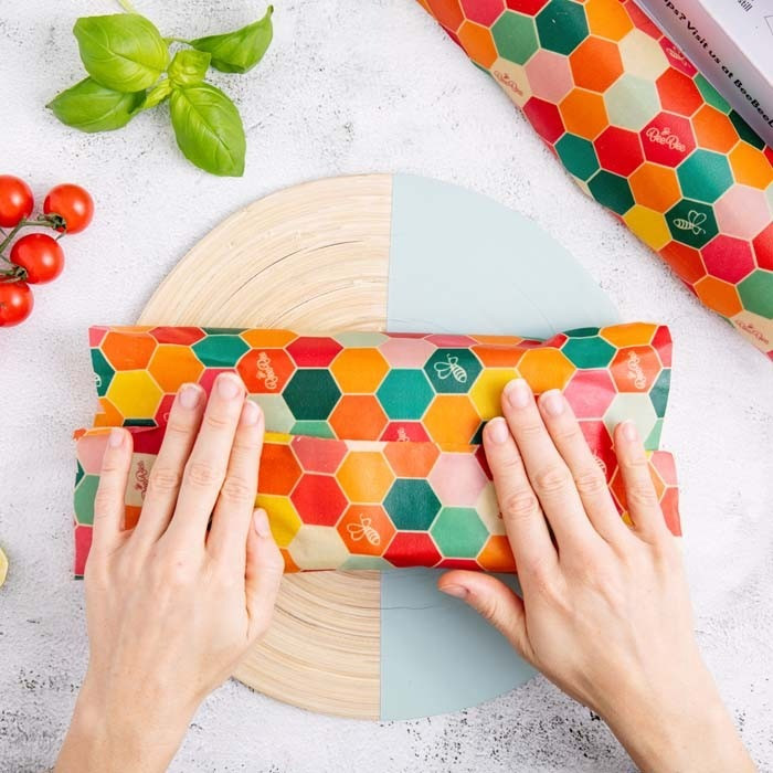 Avec ce généreux rouleau aux motifs nid d’abeille, vous pouvez couper simplement aux ciseaux la taille du bee wrap dont vous avez besoin pour mettre à l’abri vos fruits, légumes, morceaux de fromage et autres aliments. Excellente alternative zéro déchet aux films alimentaires en plastique et au papier alu. Très facile à utiliser et à entretenir.