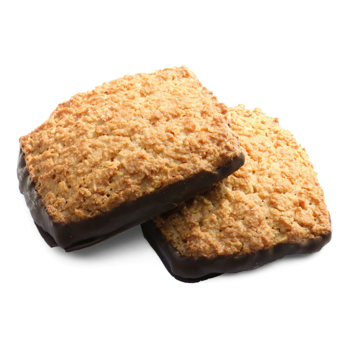 Ingrédients : pâte sablée* (farine de blé T65*, sucre de canne roux*1, margarine végétale* (huile de palme non hydrogénée*, stéarine de palme*, huile de tournesol désodorisée*, eau, sel, acide citrique), beurre*, œuf*, sucre glace* (sucre de canne blond*, fécule de pomme de terre*)), noix de coco râpée* (26 %), sucre de canne roux*1, chocolat noir* (masse de cacao*1, sucre de canne blond*1, beurre de cacao*1, vanille*1), œuf*, jus de raisin concentré*, fibres de pomme*.