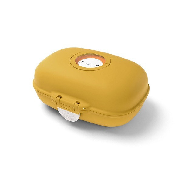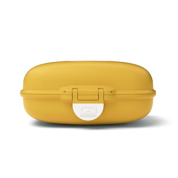 La boîte à goûter MB Gram jaune moutarde est très résistante et parfaitement hermétique grâce à son joint en silicone. Sa forme arrondie renforce sa solidité.
