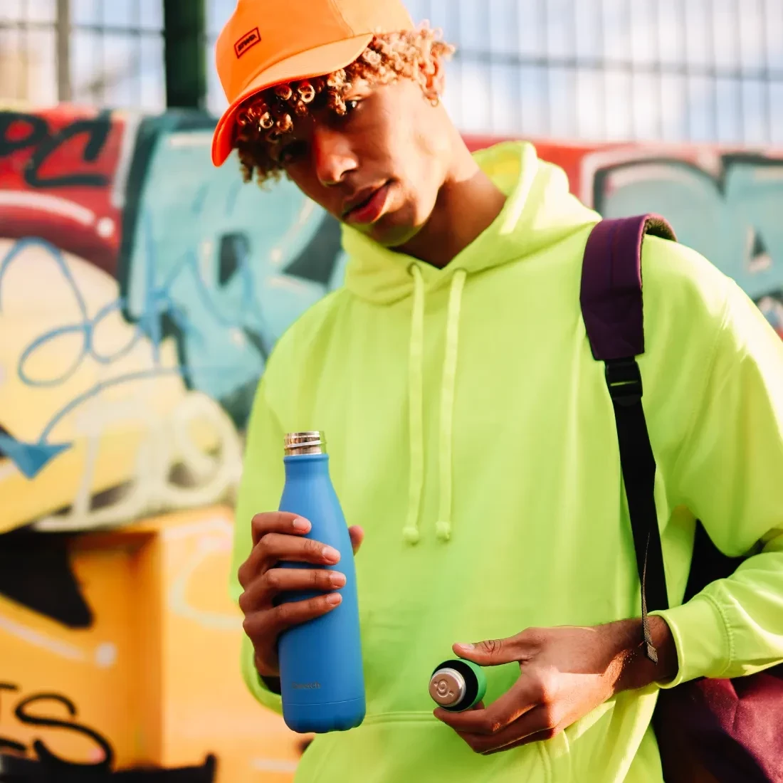 Bouteille colors bleu bouteille et gourde Qwetch 27,00 € Plus que 7 en stock Couleur Bouchon Jaune Rose Rose Jaune Vert Bleu Bleu Vert Dimensions et poids Hauteur : 26 cm Diamètre : 7 cm Diamètre d’ouverture : 3,2 cm Poids : 0,30 kg Capacité : 500 ml Matériaux Acier inoxydable 304 (18/8) Joint silicone couleur : bleu et bouchon vert Maintien 12h au chaud et 24h au froid Sans BPA