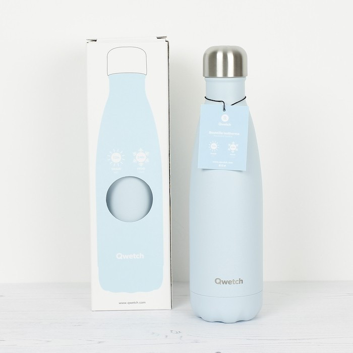 Bouteille en inox Qwetch Pastel bleu 500 ml isotherme et sans BPA