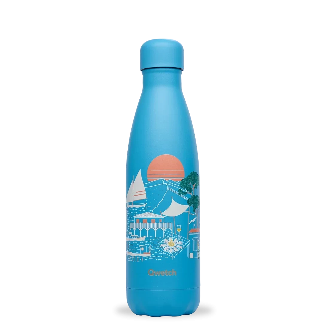 Bouteille côte ouest bouteille et gourde Qwetch 31,00 € Plus que 4 en stock Dimensions et poids Hauteur : 26 cm Diamètre : 7 cm Diamètre d’ouverture : 3,2 cm Poids : 0,30 kg Capacité : 500 ml Matériaux Acier inoxydable 304 (18/8) Joint silicone Maintien 12h chaud et 24h au froid Sans BPA