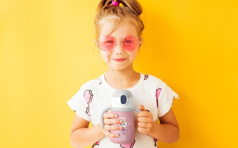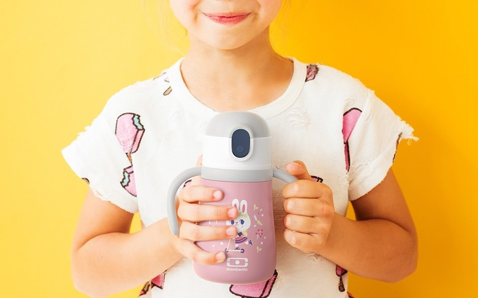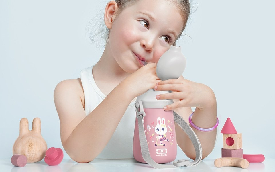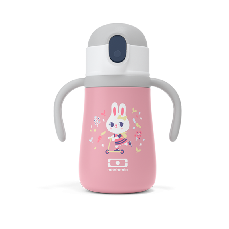 La bouteille isotherme enfant MB Stram rose Bunny Monbento, une excellente alternative aux bouteilles jetables