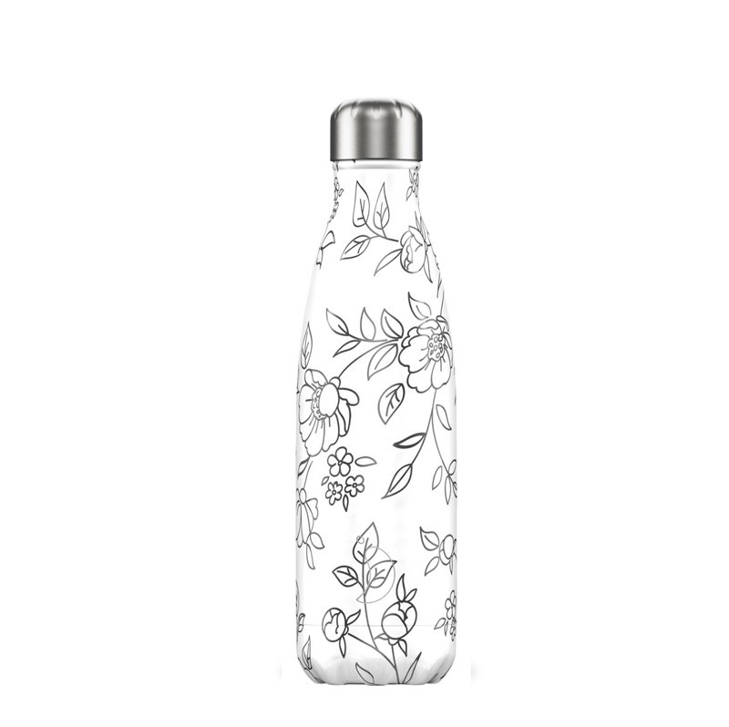 Fabriquée par la marque londonienne Chilly’s, fondée en 2010 et connaissant aujourd’hui un succès énorme, la bouteille Line Art fleurs offre d’excellente performance en termes d’isolation.