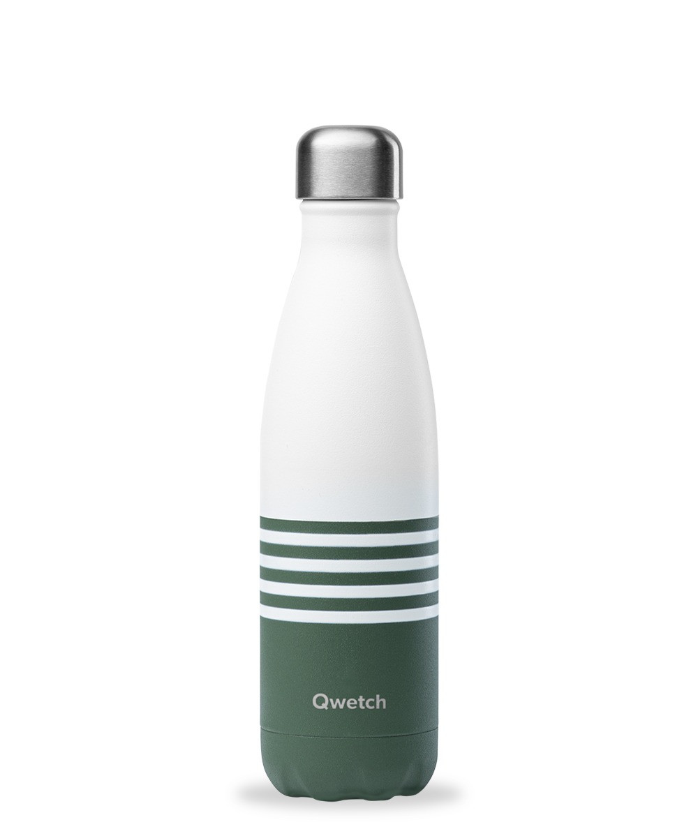 Et, dans la gamme des bouteilles isothermes Qwetch, le modèle « Marinière Kaki » 500 ml inox, se distingue tout particulièrement par son habillage élégant, reprenant de manière originale un motif qui a fait le tour de toutes les mers.