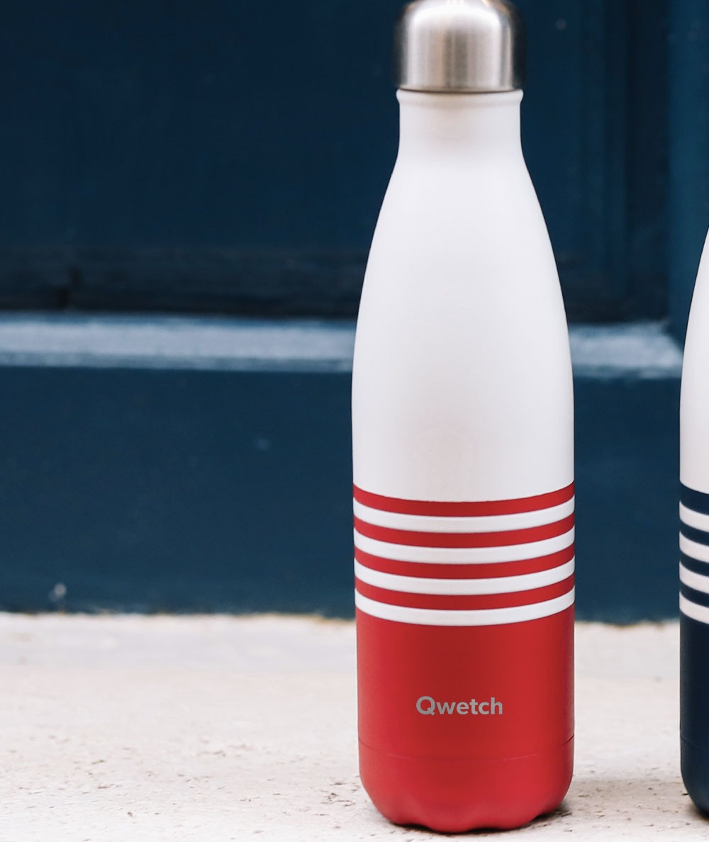 Vous appréciez la mode autant que l’écologie ? Pourquoi serait-ce forcément incompatible ? Ne dissociez plus les deux grâce à la collection de bouteilles marinières isothermes de la marque Qwetch. Un clin d’œil au motif iconique des matelots comme une invitation au dépaysement à chaque gorgée. En hiver comme en été, en intérieur ou en extérieur, vos boissons restent parfaitement chaudes ou froides. Un air de grand large plane sur cette bouteille, valorisant d’une belle manière cette alternative écologique. Saine et fonctionnelle elle n’est pas destinée uniquement aux vacanciers et s’adapte aussi au mode de vie des actifs. Votre bouteille Marinière Rouge 500 ml isotherme en inox ne vous quittera plus. Au bureau, en sortie, à la salle de sport… elle s’invite partout et fait sensation à chaque passage.