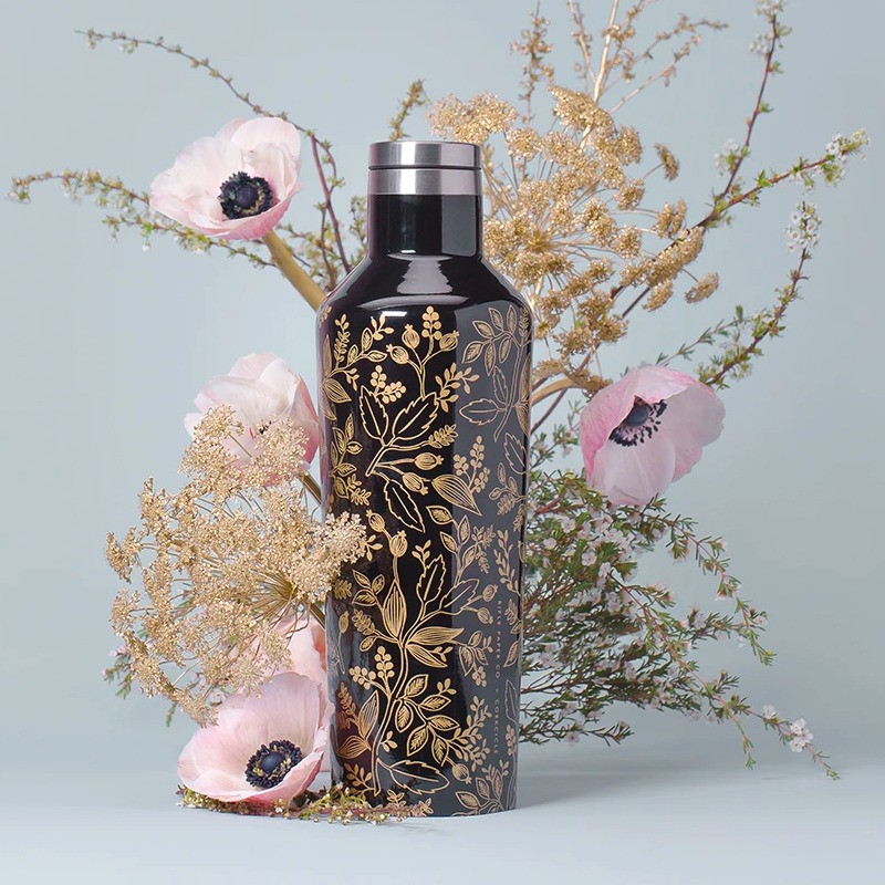Cette bouteille réutilisable chic et élégante s’habille d’un imprimé fleuri sur un fond noir. Elle est belle certes, mais elle est surtout très pratique. Avec son bouchon parfaitement étanche, vous pouvez l’emporter partout. Elle est isotherme et maintient à la bonne température vos boissons chaudes et froides.