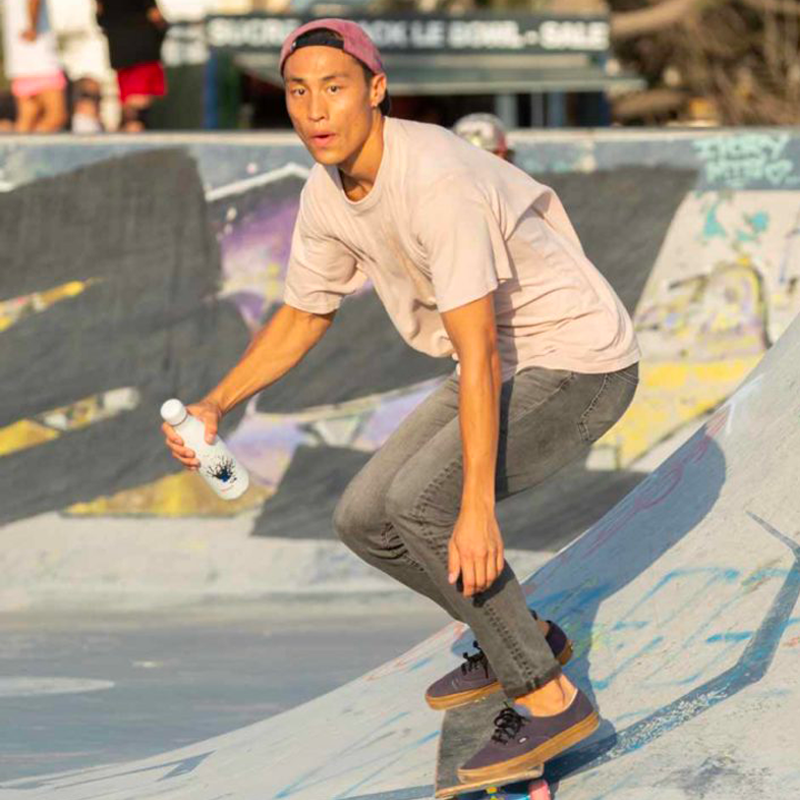 Un splash de peinture anthracite et bleu habille cette bouteille réutilisable et isotherme. Sa contenance de 500 ml et son bouchon étanche vous permettent de transporter vos boissons partout.