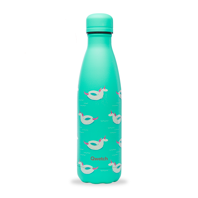 Prélassez-vous au bord de la piscine et hydratez-vous avec une boisson à la bonne température grâce à cette jolie bouteille isotherme au motif licorne.