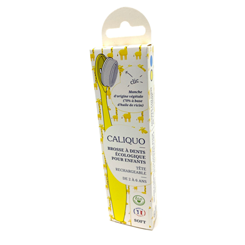 Brosse à dents à tête rechargeable enfant jaune brosse à dents enfant Caliquo Cette jolie brosse à dents à tête rechargeable est adaptée aux enfants de 2 à 6 ans. 3,80 € Rupture de stock Couleur Jaune Bleu Prévenez-moi du retour de ce produit Envoyer Recharges vendues séparément Fabrication française Poils souples Recyclable Manche = 70 % en bioplastique Poils synthétiques Poils en nylon Végane Conditionné en ESAT Adaptée pour les enfants de 2 à 6 ans Modèle jaune