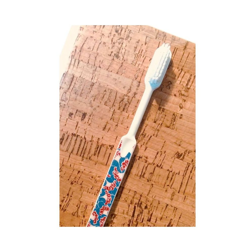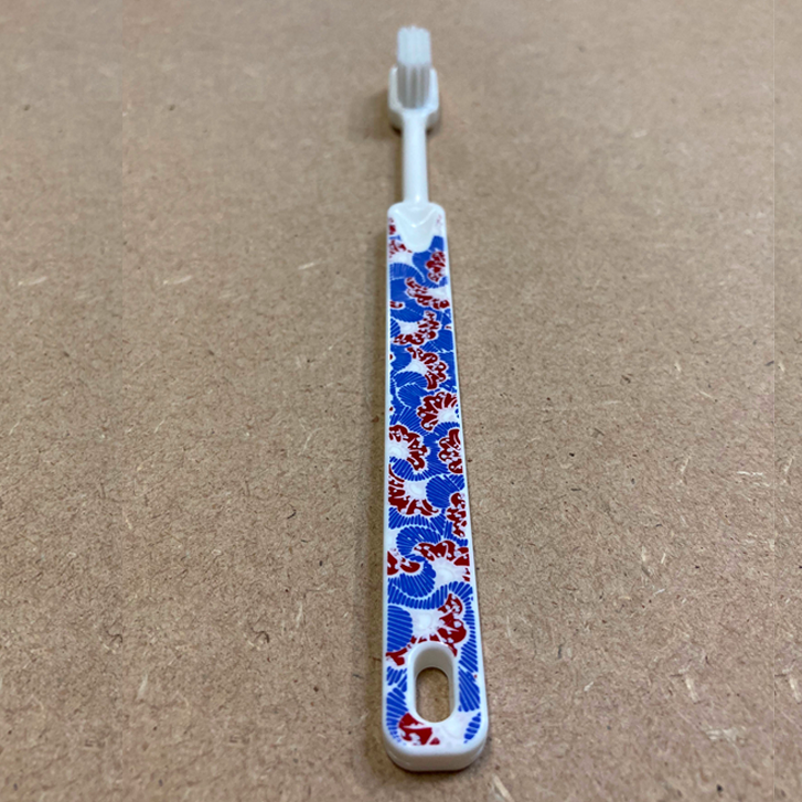 - Coloris : brosse à dents blanche à motifs fleuris bleus et rouges