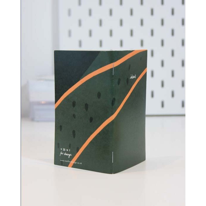 Un petit carnet qui ne prend pas de place, à emmener partout avec soi. Il est fabriqué à la main et produit de manière durable : ses pages sont en papier 100 % recyclé et la couverture est réalisée à partir d'amidon de maïs récupéré. Format A6, pages lignées.