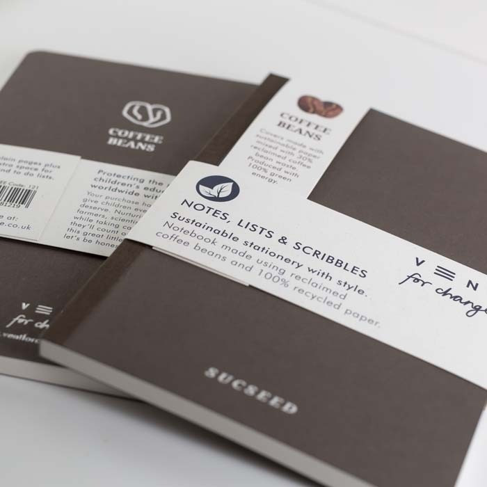 - Couverture en papier recyclé et grains de café