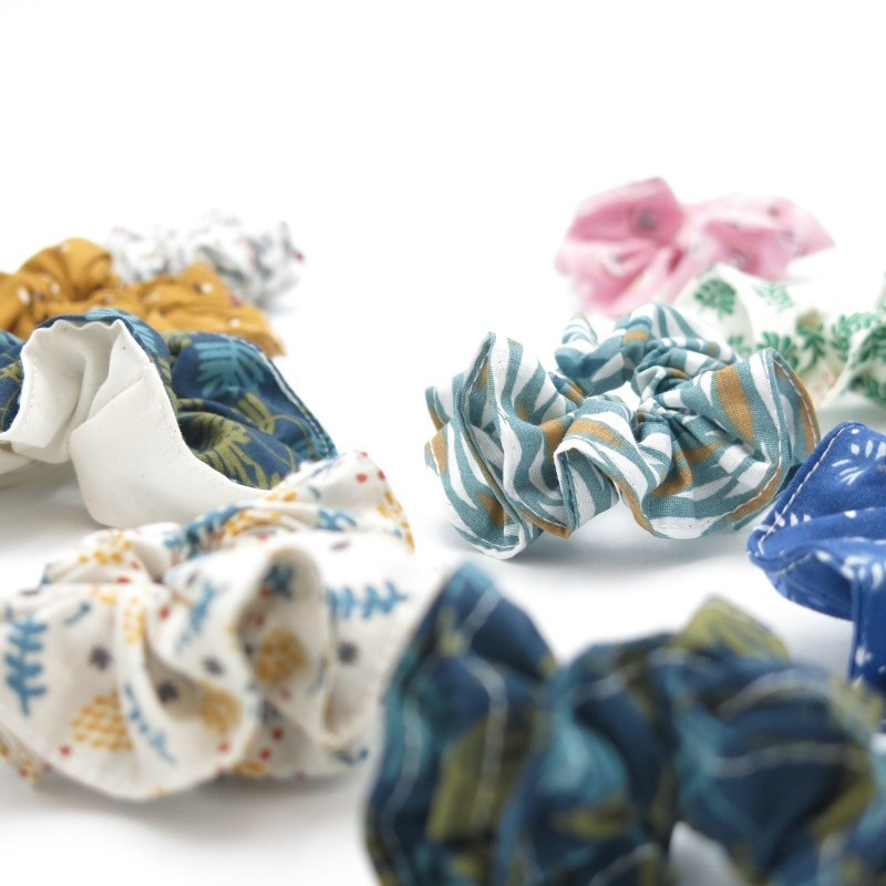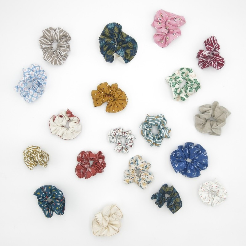Des chouchous de différentes couleurs et motifs, en lin, chanvre ou coton certifiés GOTS ou Oeko-Tex, pour attacher vos cheveux avec fantaisie. Durables et zéro déchet, puisqu'ils sont fabriqués à la main à partir de chutes de tissu.