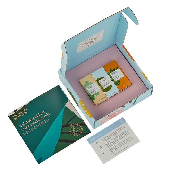 - 3 x 12ml huiles essentielles : Patchouli, Bergamote, Petitgrain
