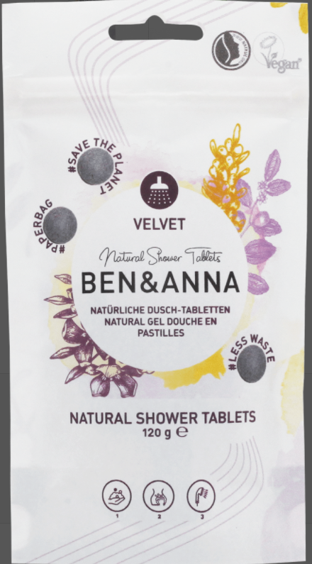 Rafraîchit, nettoie et soigne. Nettoyage et soins naturels à partir d’une seule source et d’un seul comprimé doux Velvet à utiliser sous la douche. Avec des ingrédients naturels : du bicarbonate de soude à l’huile d’olive en passant par des extraits spéciaux d’algues d’eau douce et d’agrumes.
