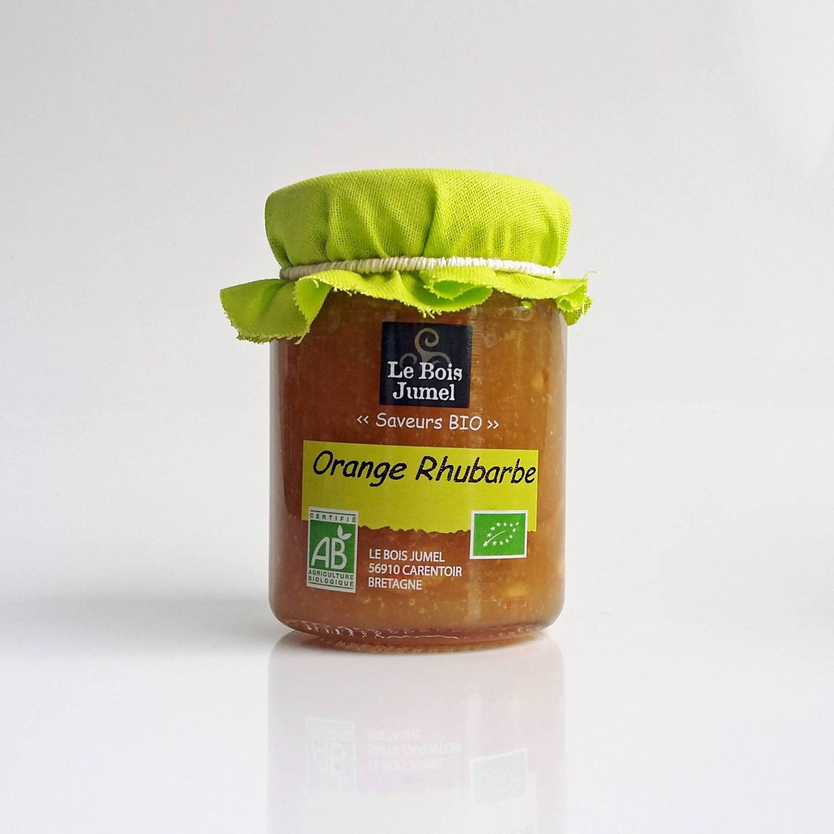 Fruits* (55%) (rhubarbe* (27%), orange* (27%)), sucre de canne*, gélifiant : pectine, jus de citron concentré*.