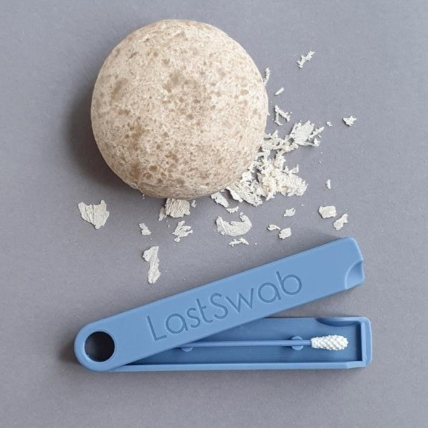 Le LastSwab bleu baleine est très simple à nettoyer : il suffit d’appliquer un peu de savon dessus, notamment sur les extrémités, et de le rincer à l’eau claire. Séchez-le manuellement ou laissez-le sécher à l’air libre, puis rangez-le dans son étui assorti, fabriqué en polymère biodégradable à base de maïs. Cet étui est très pratique pour conserver mais aussi transporter le coton-tige.