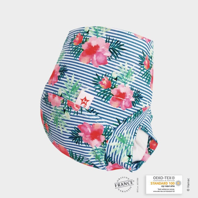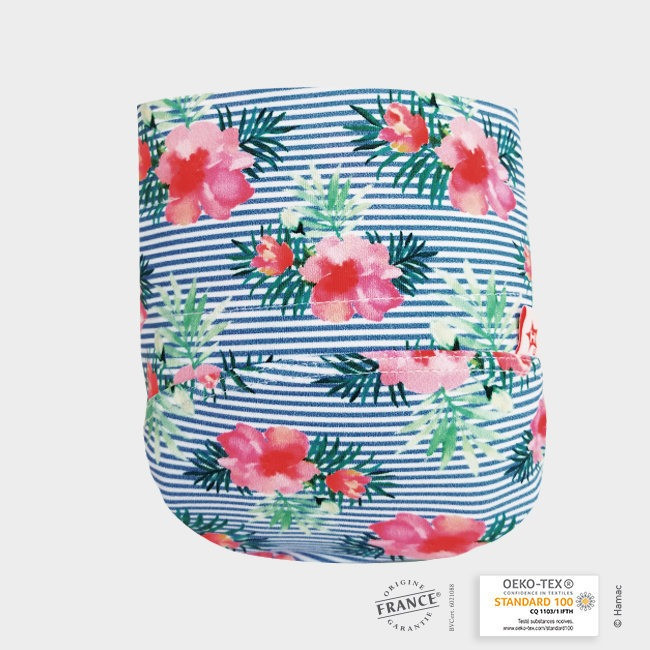 Stocker séparément la couche culotte T.MAC Pimprenelle des nacelles et absorbants pour éviter que l’urine ne fasse déteindre les couleurs et n’altère le motif.