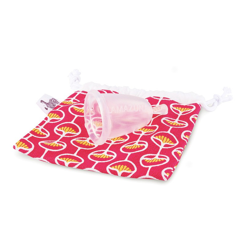 La marque française Lamazuna propose une cup discrète et confortable, livrée dans une petite pochette rose en coton biologique pour faciliter son rangement. Elle est fabriquée en silicone platine médical et ne contient ni latex, ni phtalates, ni agents blanchissants. La taille 1 est adaptée aux flux légers et aux femmes n’ayant pas accouché par voie basse.