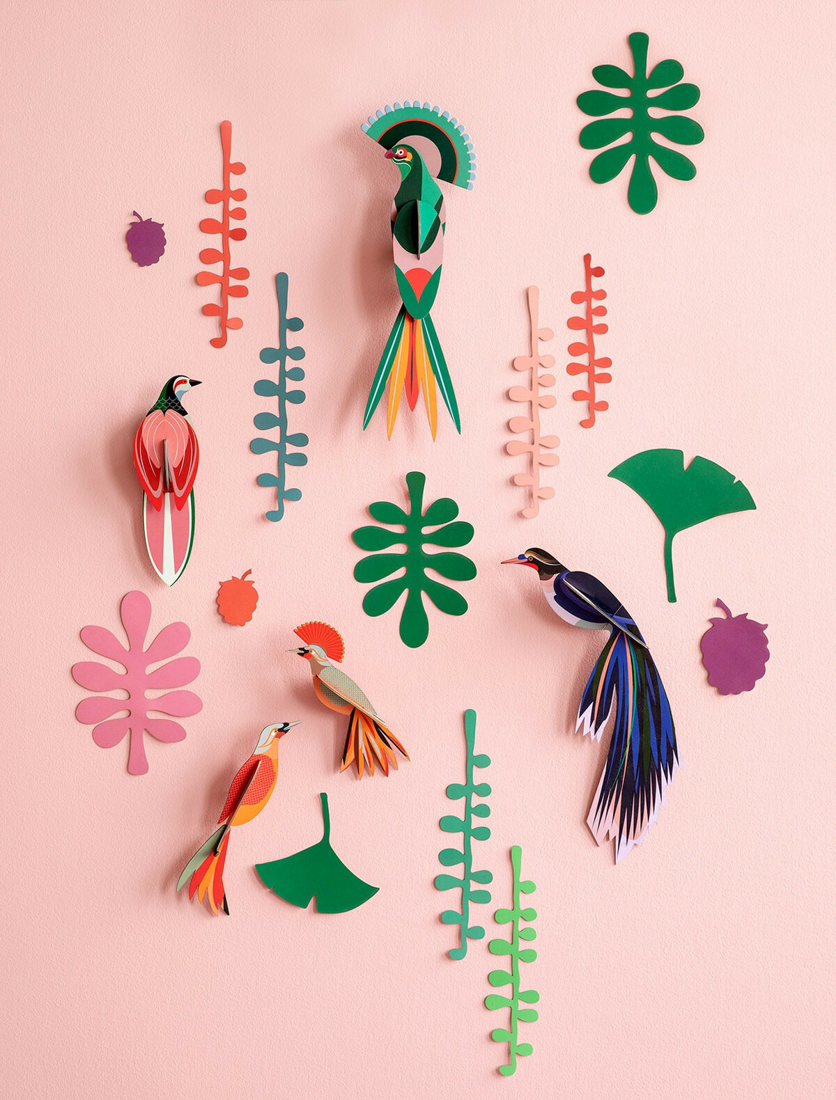- Inclus sont 5 oiseaux et 14 feuilles pop-out, ainsi que du ruban adhésif double face en mousse pour placer les feuilles sur le mur