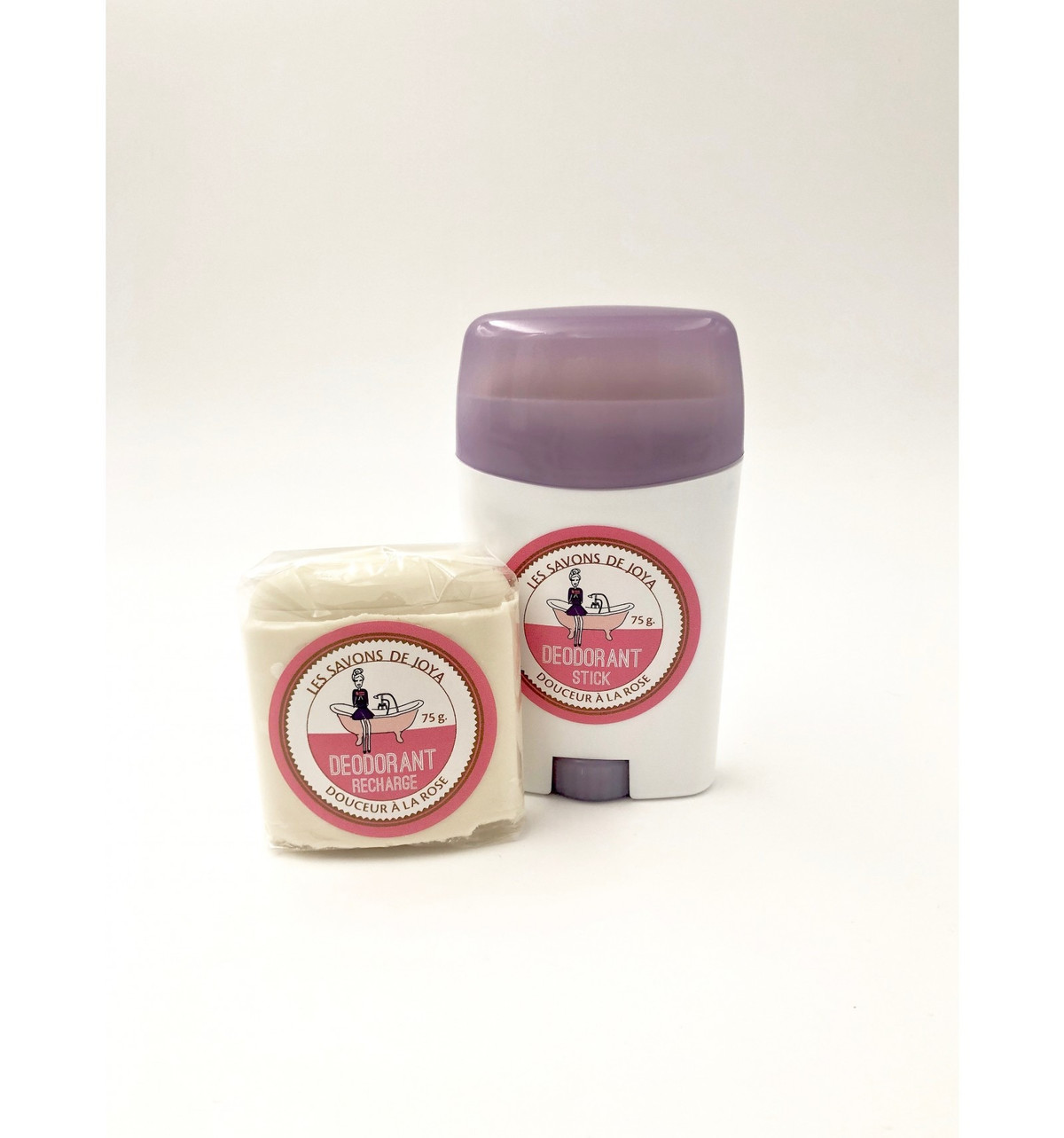 Les Savons de Joya vous propose un déodorant stick rechargeable vegan à la rose. Il est idéal pour toutes les peaux et notamment pour les aisselles sensibles. Voici ses points forts :
