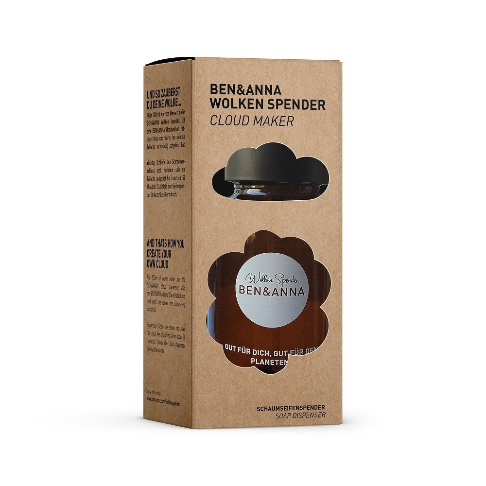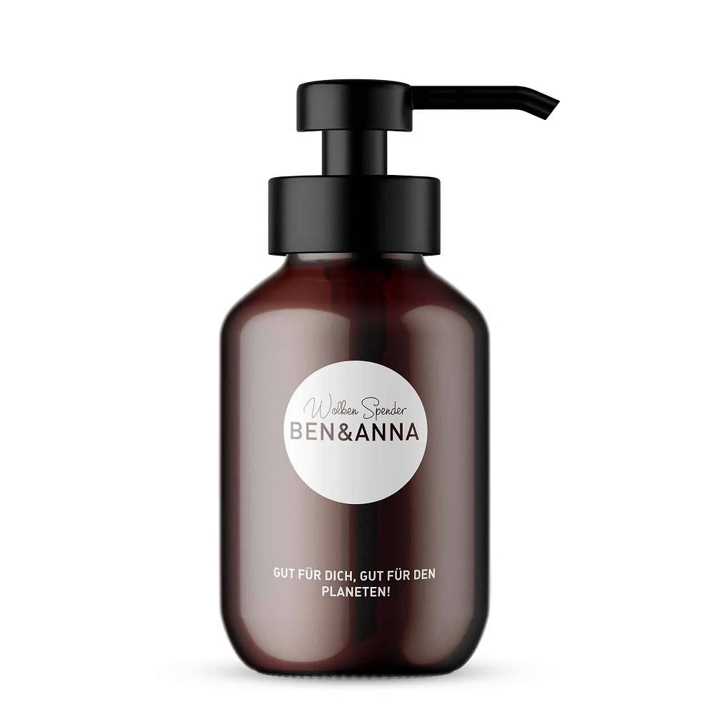 Distributeur de Savon de la marque Ben et Anna. Il a été conçu pour les pastilles de savon à dissoudre de la même marque. Ce distributeur en verre ambré peut également servir à d'autres usages du quotidien.