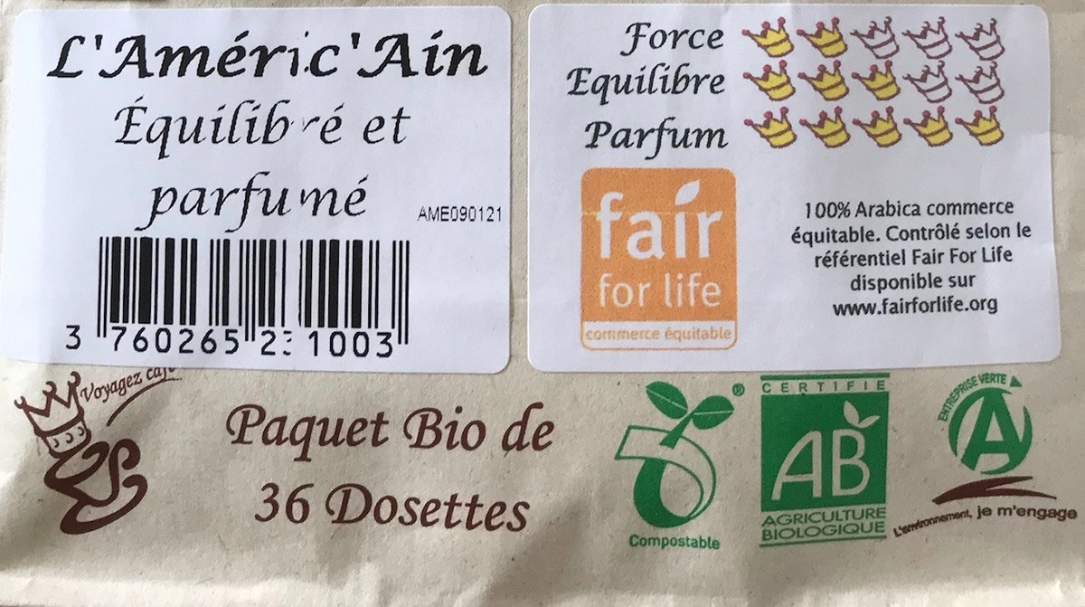 Café dosettes bio L’Américain fair For Life x 36 - compatible Senseo