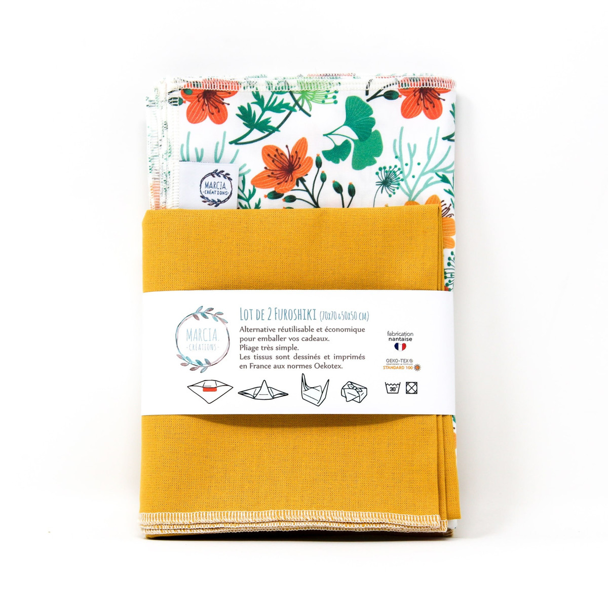 Emballez vos cadeaux en mode zéro déchet avec la technique du Furoshiki. Ces deux tissus de tailles différentes sont confectionnés dans du coton oeko-tex et se lavent en machine à 30°. Réutilisez-les à l’infini pour emballer vos surprises.