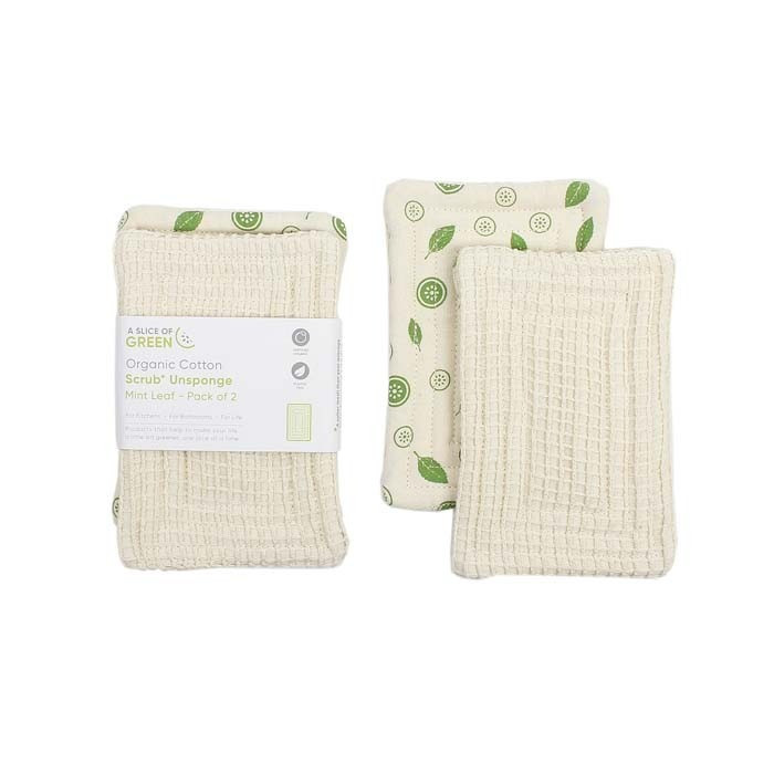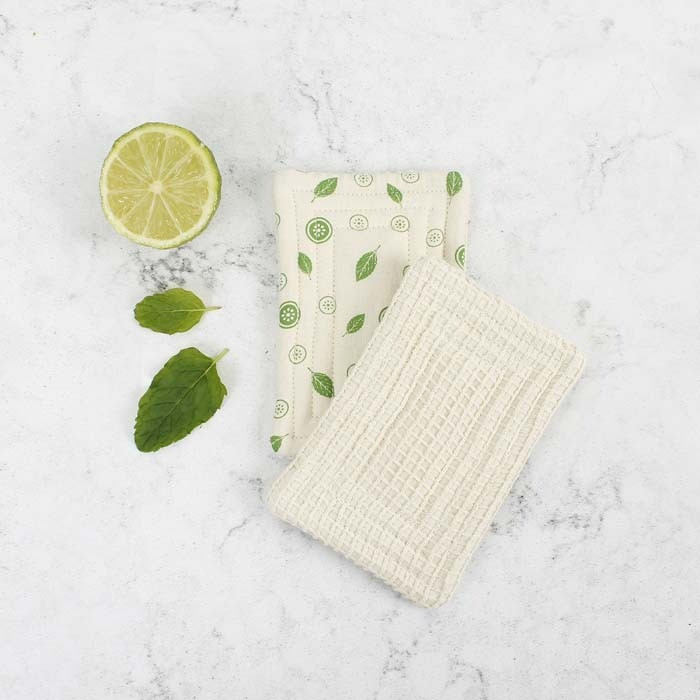 2 éponges en coton bio motif feuille de menthe