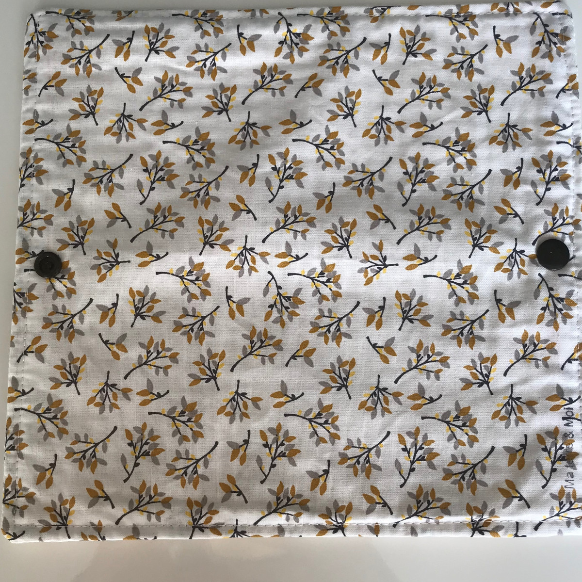 - Matière : Une face au motif coloré en coton et une face en nid d’abeille de couleur écru