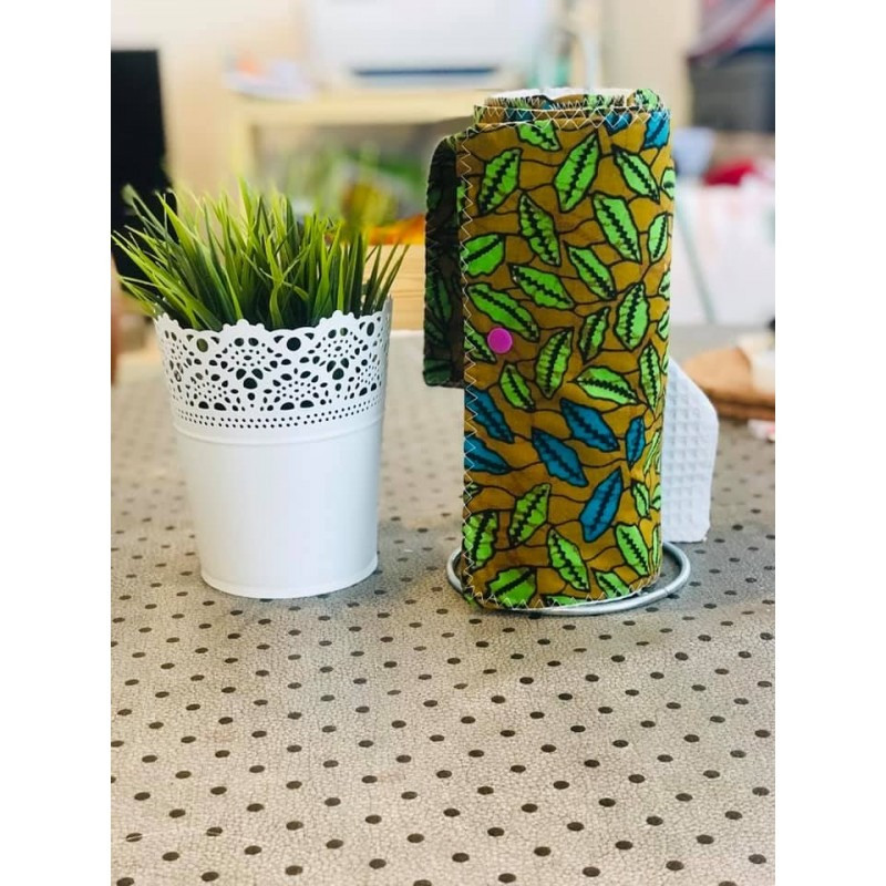Composez votre rouleau d’essuie-tout Ma terre et moi, avec cette feuille en coton imprimé wax. Elle s’attache aux autres feuilles absorbantes grâce à ses deux boutons pression.