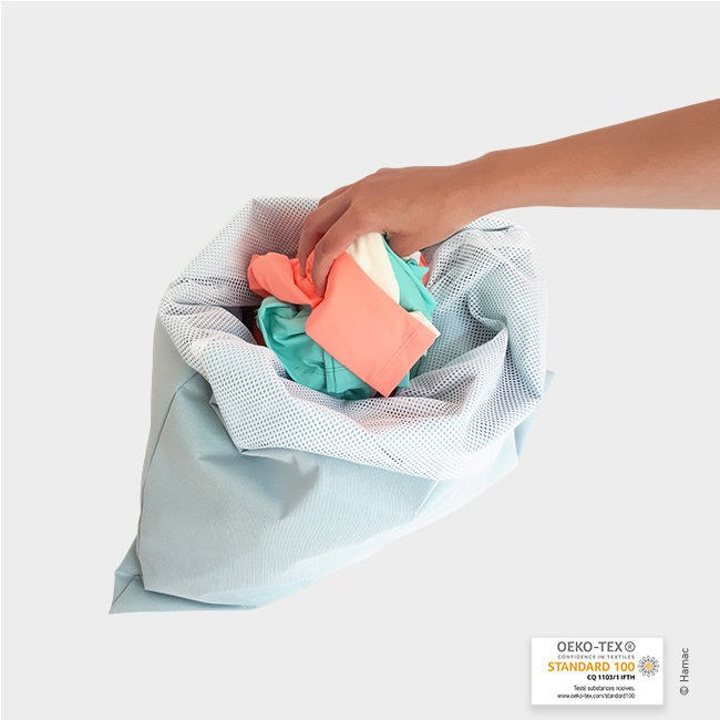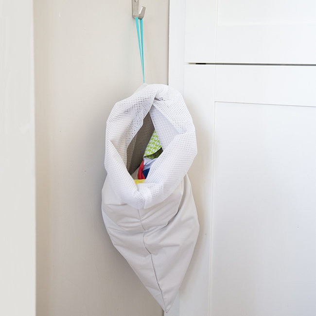 Stockez et lavez vos couches lavables, et vos absorbants à l’aide de ce grand sac étanche et son filet de lavage.