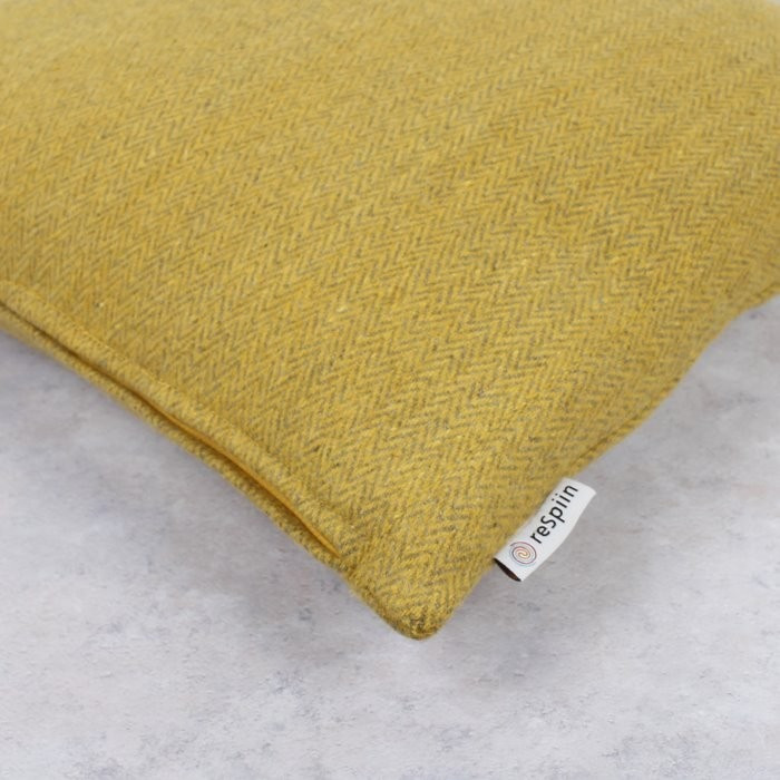 Habillez les coussins de votre canapé d’une jolie couleur safran avec des housses en laine recyclée.