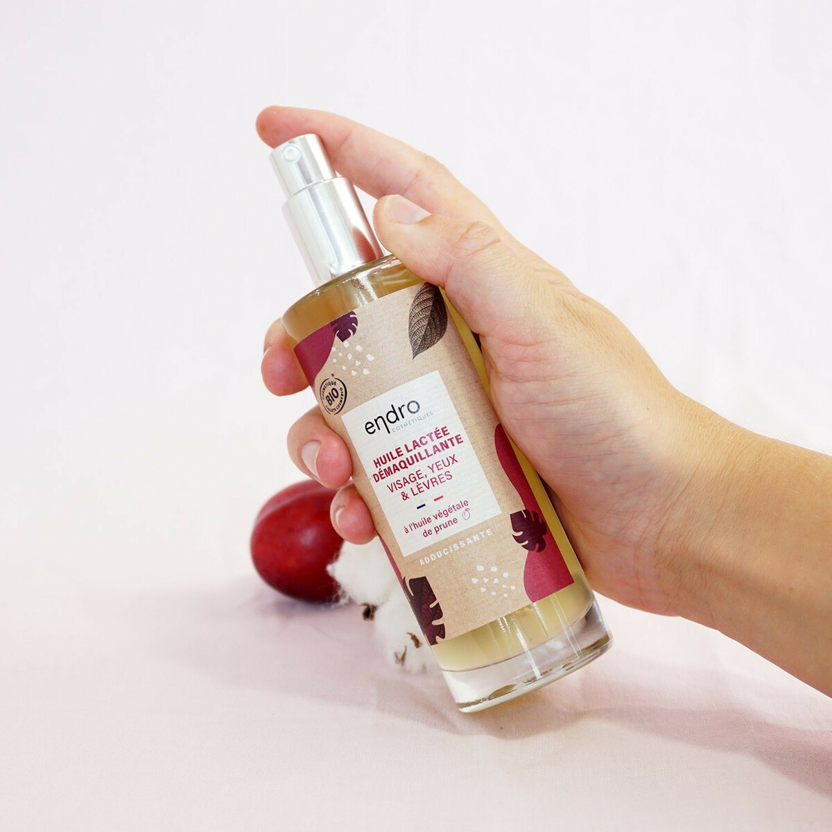 - Composition : Huile de tournesol*, émulsifiant d’origine végétale (effet lacté), huile de prune*, tocophérol (anti-oxydant).